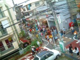 道路にはみ出してるお店のチェックをやってた。道が狭いから、細かいこと言うとお互い大変。