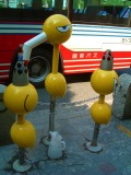 道路にはみ出してるお店のチェックをやってた。道が狭いから、細かいこと言うとお互い大変。